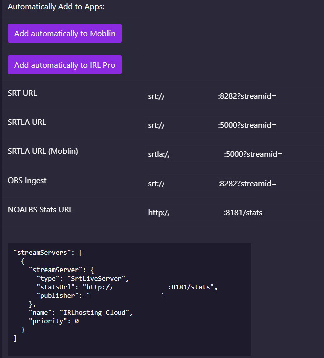 - Get SRT(LA) endpoint from IRLhosting (Cloud servers come with an endpoint provided)